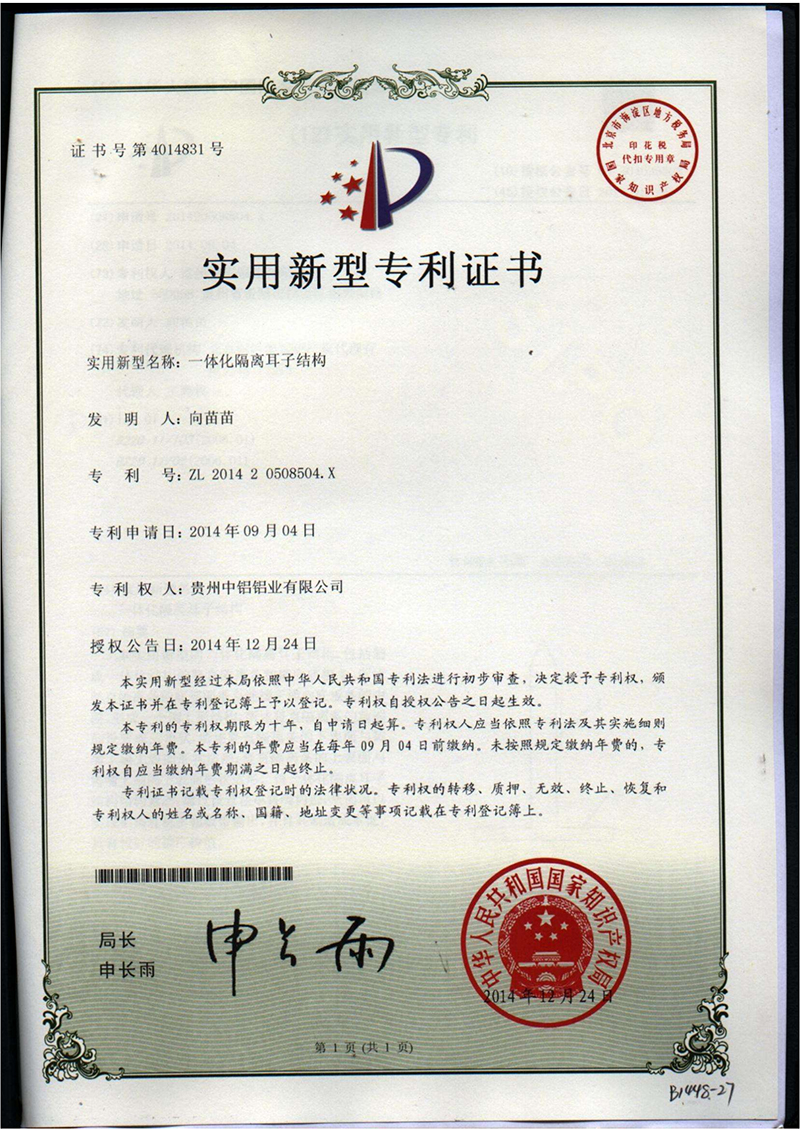 实用新型专利证书