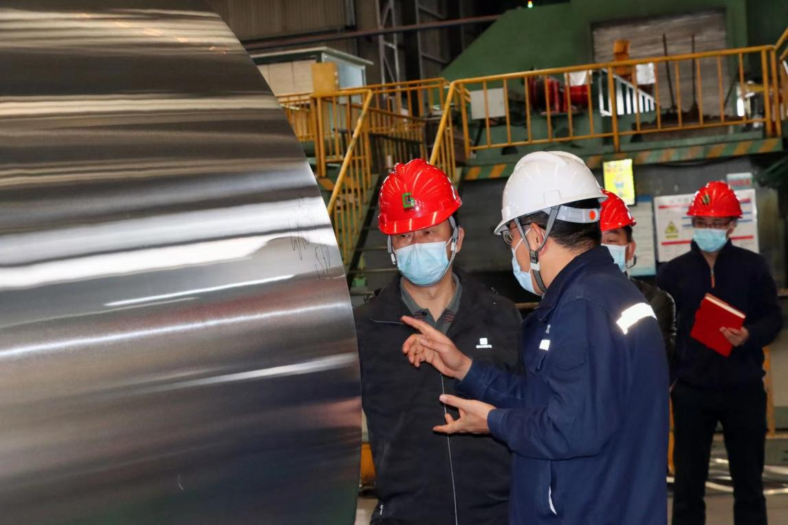 调研组一行深入贵州中铝冷轧制造部的生产一线了解企业主要产品、技术工艺等情况。随后,黄献喜一行与贵州中铝企业领导班子成员进行交谈,听取了贵州中铝对生产经营情况、外贸进出口情况、物流情况等相关汇报,调研组一行对贵州中铝的生产经营模式及取得的成绩给予了肯定。同时对公司在经营过程中存在的问题及困难有了初步了解。